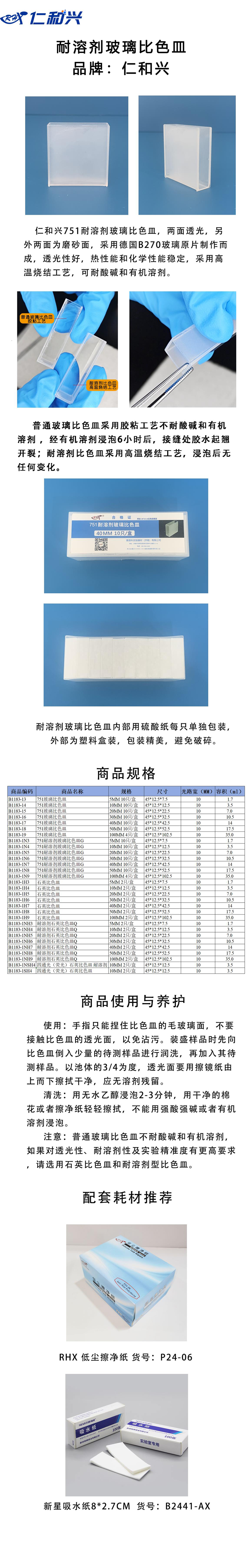 耐溶剂玻璃比色皿