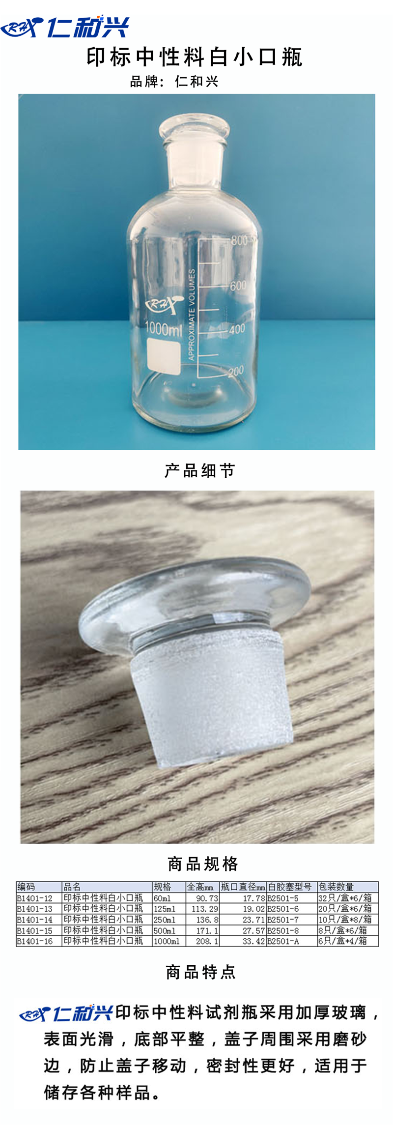 印刻度线,可湿热灭菌,不能高温烘烤,磨口细腻