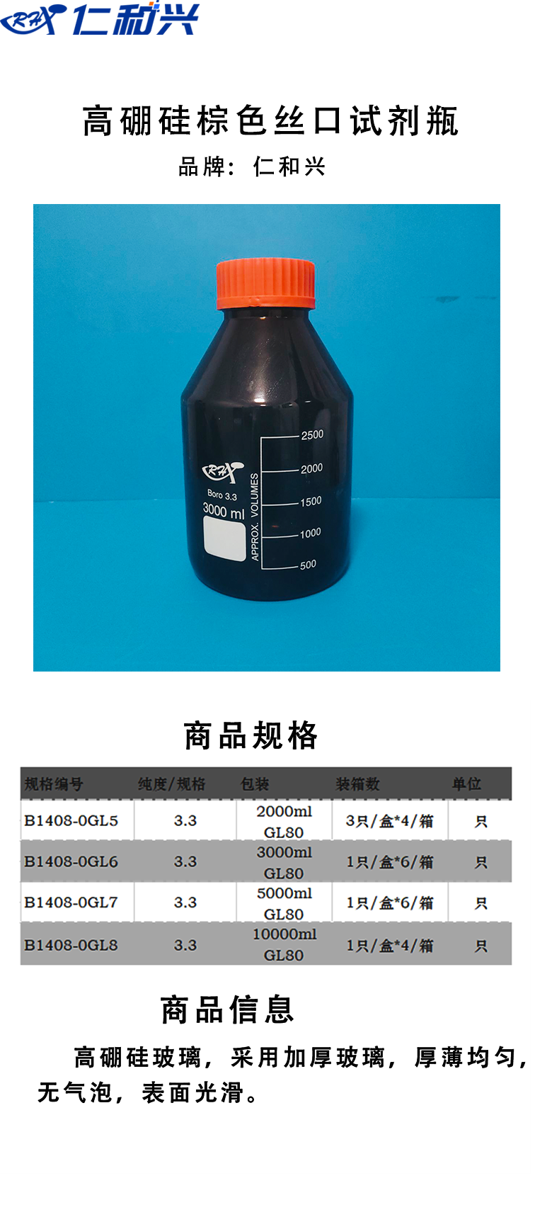 高硼硅棕色丝口试剂瓶GL80